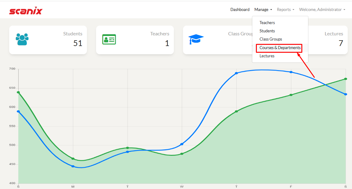 Click on "Manage" from the top right side menu. Then click on "Courses & Departments".