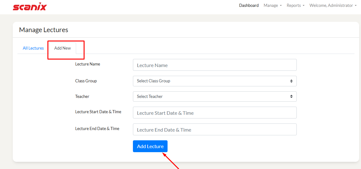 To add a lecture, click on "Add New".. Fill all the details and click on "Add Lecture".