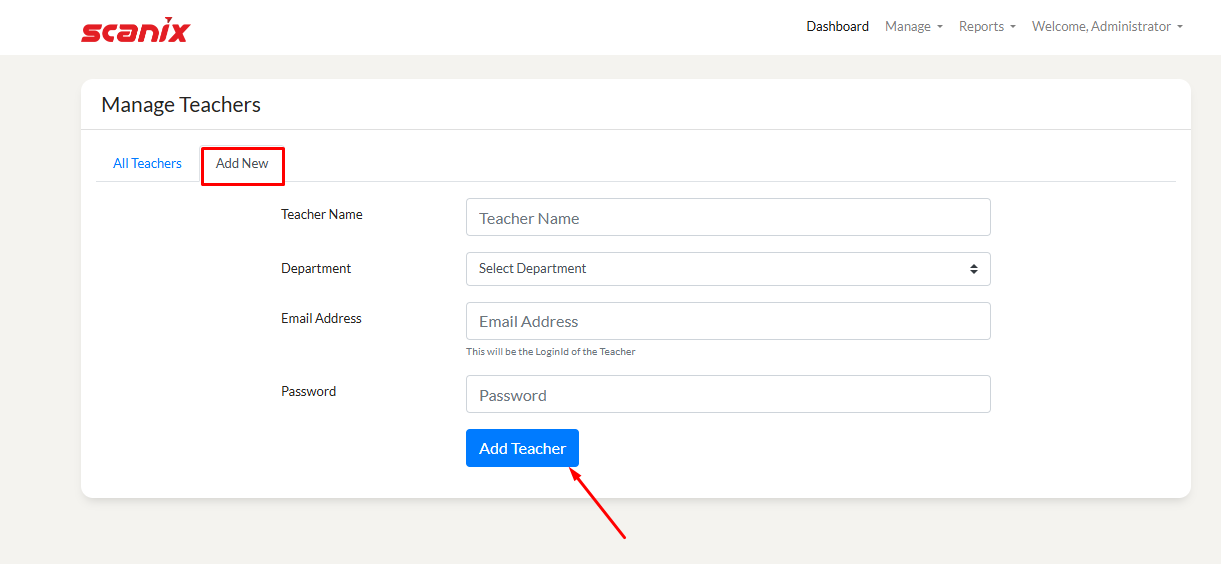 Click on "Manage" from the top right side menu. Then click on "Students". Here you check all Students details. To add new Student, click on "Add New".. Fill all the details and click on "Add Student".